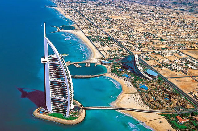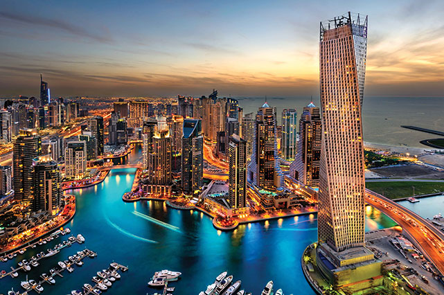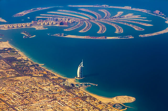 Dubai is a city and emirate in the United Arab Emirates known for luxury shopping, ultramodern architecture and a lively nightlife scene. Burj Khalifa, an 830m-tall tower, dominates the skyscraper-filled skyline located near JW Marriott Marquis, Dubai, UAE. At its foot lies Dubai Fountain, with jets and lights choreographed to music. On artificial islands just offshore is Atlantis, The Palm, a resort with water and marine-animal parks.