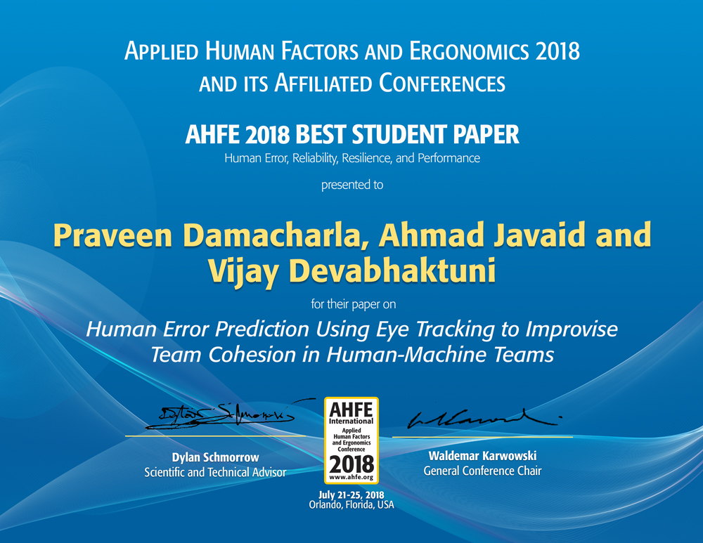 AHFE 2018 BEST STUDENT PAPER AWARDS |